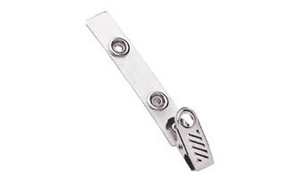 Description: Nickel-plated steel 1-hole ribbed-face clip w/ 2 3/4" clear vinyl strap