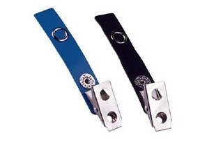 Description: Nickel-plated steel 2 hole clip with 2 3/4" colored vinyl strap